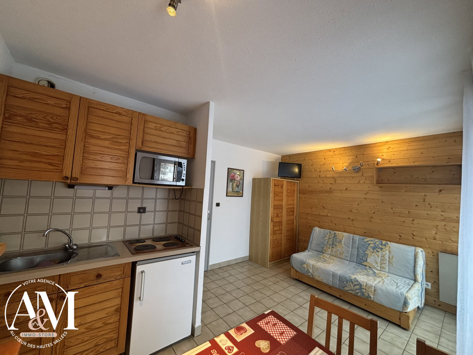 Il profite d'une terrasse exposée EST accessible depuis la pièce à vivre équipée d'une kitchenette. Une salles d'eau avec WC et un coin-montagne complètent le bien.