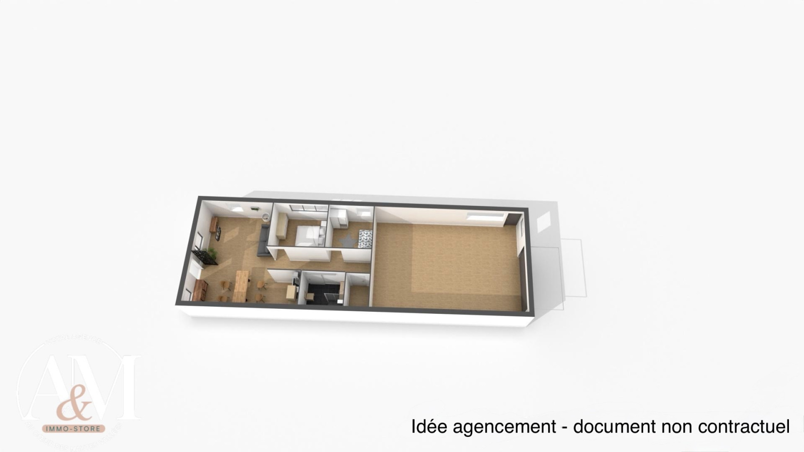 Cette configuration, vous permettra d'immaginer des agencements adaptés à votre activité.